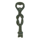 Pop open a cold one with this rusted metal sailor's knot bottle opener. Measures 6"L x 1.75"W. Throw this in the beach bag or the cooler or keep it by the bar or near the fridge. If you're by the water or the sea, this handy bottle opener adds an authentic nautical flair.