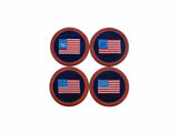 Smathers & Branson American Flag Needlepoint Coasters. Packaged in sets of 4 in a polished brown wooden holder. Bring nautical style to your coctail hour. Makes an elegant Holiday or hostess gift.