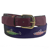 Smathers & Branson Bluefish and Stripers Needlepoint Belt. Show your nautical spirit and fishing pride with this handstitched belt that's sure to be a keeper. Whether dressed up or down, for a day out at Coatue or at the rip off Great Point, perhaps, Smathers & Branson belts deliver classic and timeless American style. For proper sizing, add 2 inches to pant size to get the perfect fit.