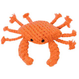The Crab is a toy is for light chewing dogs. Measures 4". For every purchase, the manufacturer, Jax & Bones donates 10% of the proceeds to rescue groups to help homeless animals find their forever home. Hand-tied and dyed using non-toxic vegetable dyes. As dogs chew the toy, the rope toy frays and acts like doggie dental floss. Dip it in water and freeze it to cool down a hot dog or to soothe a teether.
