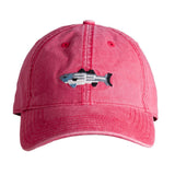 6-Panel Harding Lane Baseball Cap in weathered red with a needlepoint Striped Bass design. 100% cotton. Deep fitting and pre-washed. Adjustable back strap made of white sailcloth with brass clasp. High quality, good looking hat from Harding Lane. Definitely a keeper!