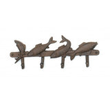 This rust colored keyrack has 4 hooks decorated with dancing fish. Useful as a keyrack or to hang hats or clothes. Fish bone key rack measures 4.5"H x 14"L. Decorate your house, office or boat while organzing in authentic nautical style. The bluefish are running!