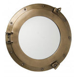 Port Hole Mirror in Aluminum measures 20" in diameter with a 13.5" mirror. This mirror will complement any nautical home.
