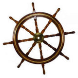 Wood Ships Wheel measures 36" in diameter. Display inside or outside the home in authentic nautical style.