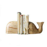 Hand-carved whale-shaped bookends in mango wood. Measures 5 1/2" high. Adds rustic and nautical flair to any coastal-inspired home.