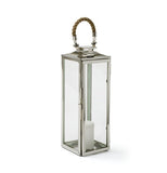 Brass, glass, and rope lantern that measures 7.5"L x 7.5"W x 225" H. Beautiful nautical accent piece on its own or sold in combination with it's smaller partner, the Overboard Lantern also sold by Nantucket General Store. Makes a great and memorable gift, either on its own or in a the pair.