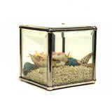 This silver-plated Sand Terrarium with Sea Shells is a beautifully decorative piece for home, office, school, or boat. Measures a 5" square: 5"L x 5"W x 5"H.