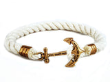 The American Sailor James Kiel Patrick Bracelet is handcrafted from twisted nautical rope and finsihed with a brass anchor clasp for a classic Nautical look. Simple and elegant in a neutral color, the American Sailor bracelet is perfect for layering or wearing on its own.