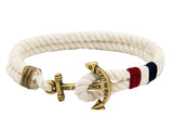 The American Yacht bracelet by Kiel James Patrick is made from a double strand of twisted high quality white cotton cord that are attached together with red, white, and blue strands of Irish cotton waxed linen