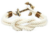 A Kiel James Patrick white sailors knot rope anchor bracelet. While we're fans of the classic slip-on version, we do love being able to simply take this KJP one on or off before getting it wet. If you are looking for an accessory in and around the beach, try this simple and classic KJP anchor bracelet.