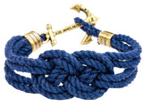Solid brass anchor surrounds the navy nautical cord.