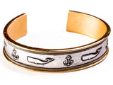 The Nantucket Sloops bracelt from James Kiel Patrick is made from a combination of polished sterling and gold plating with an etched whale and anchor design. Whether you're in Nantucket now or just dreaming of being here, this bracelet will transport you. Classic, elegant, and versatile, this bracelet can be dressed up or down.