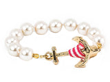 The Private Beach Club bracelet by Kiel James Patrick combines white pearls, gold anchor, and pink and white grosgrain ribbon closure. This elegant, classic bracelet can be worn casually or for more formal occassions. Stacks well with other bracelets, too.