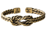 14K Gold plated, hand-antiqued Kiel Jampes Patrick (KJP) Sailors Luck bracelet signifies a promise to return. One size fits all. Sailors used knots as symobls of commitment during their long times out at sea.