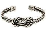 Silver oxidized and hand-antiqued Kiel Jampes Patrick (KJP) Sailors Luck bracelet signifies a promise to return. One size fits all. Sailors used knots as symobls of commitment during their long times out at sea.