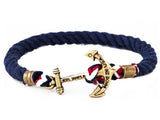 The Union Jack bracelet by James Kiel Patrick Bracelet is handcrafted from twisted navy nautical rope and finsihed with a brass anchor clasp with a splash of red, white, and blue on the closure for a classic Nautical look. Simple and elegant, the Union Jack bracelet can be layered or worn on its own.