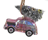 The more retro the beach car, the better on Nantucket! This tree ornament trades in its surfboards for a Christmas Tree. Measures 2.5"H x 3"L. Comes in Green, Pink, Red, and Blue.