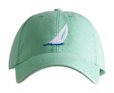 6-Panel Harding Lane Baseball Cap in keys green with a sloop needlepoint design. 100% cotton. Deep fitting and pre-washed. Adjustable back strap made of white sailcloth with brass clasp. High quality, good looking hat from Harding Lane.