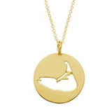 14K Gold Plate cutout circle charm of Nantucket hangs on a 16-18 inch adjustable chain.