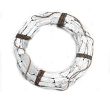 Classic White Life Preserver deconstructed for a more sytlistic-flair. Distressed whitewashed dritfwood with rope accents make this a must-have for any coastal home. Measures 19.7"L x 19.7"W.